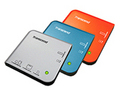 创见TS-RDM2S读卡器一共有3种颜色选择,分别是银色、兰色和橙色。外观显得新颖别致,原本正方形的机器,在其左上角和右下角处采用了圆弧形的对角设计,就像缩小版NOKIA 6670手机。在读卡器接口出都有标明兼容那类存储卡,十分的人性化。
