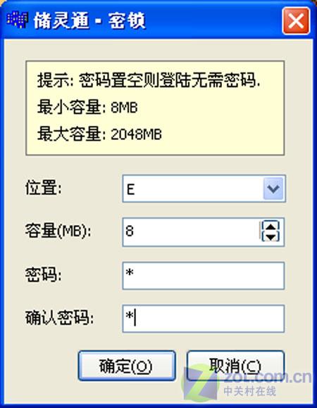 由于储灵通·密锁是将电脑硬盘的一部分划分出来并进行加密,所有被加密的数据都是储存在用户本地的硬盘上的,因此储灵通·密锁只是起“钥匙”的作用。我们可以在硬盘上划分8MB到2048MB的加密空间,并设置密码。如果密码置空,则登录时无需密码。