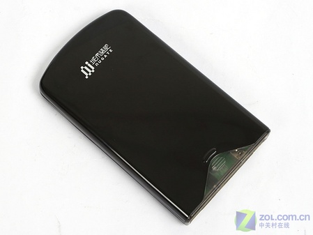 从外形上看,这款移动硬盘非常的酷,黑色的镜面外观、做工精良,整体采用了轻薄的合金材质。在体积上,130×76×15mm让携带更方便。同目前市面上的移动硬盘主流尺寸相比要小一些,而且其质量之轻给笔者留下了很深的印象。