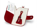 多功能的真皮皮夹,搭配上红色系的流行元素,精致的质感,时尚造型,是个人随身的时尚流行配件,此外皮套的上方附有挂环,可轻松系在皮包上,方便用户携带。